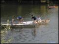 | Daß das Fischerstechen diesmal nicht wie üblich auch am Fischerfest-Sonntag stattfand, war etwas ungewöhnlich, hing aber damit zusammen, dass an diesem besagtem Sonntag ganze Ozeane aus dem Himmel fielen. Somit wurde entschieden, das Fischerstechen auf unser Jubiläum zu vertagen, was sich letztendlich -wettertechnisch- als einen Glücksgriff herausstellte. Bei schönstem Wetter stiegen dann 3 Damen und 7 Herren nacheinander in zwei Boote, um sich danach dann wieder herunterzustossen.